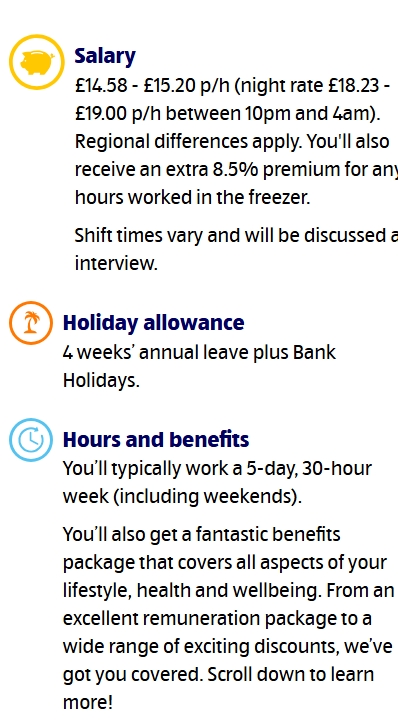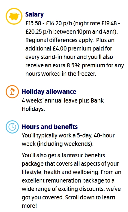 We have day and night opportunities, plus an enhanced salary for supervising our freezer section.