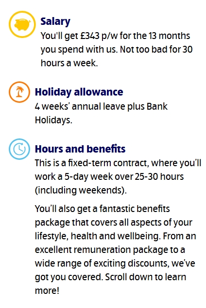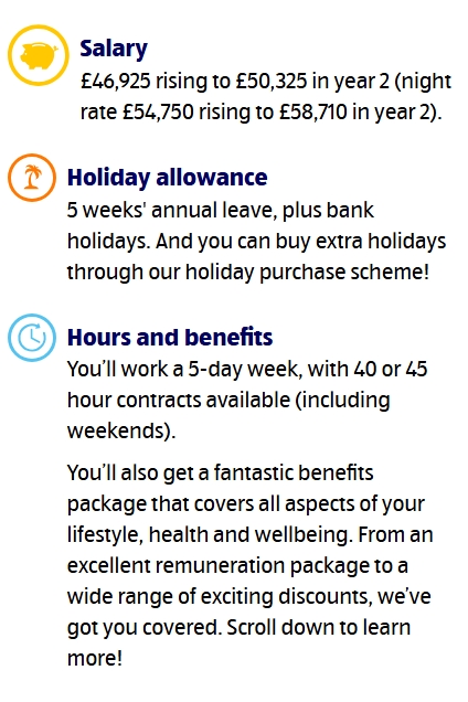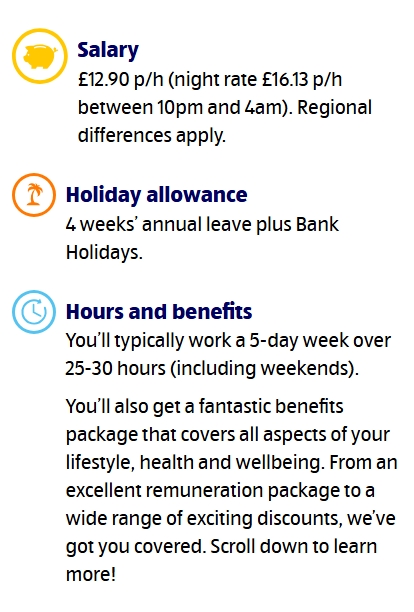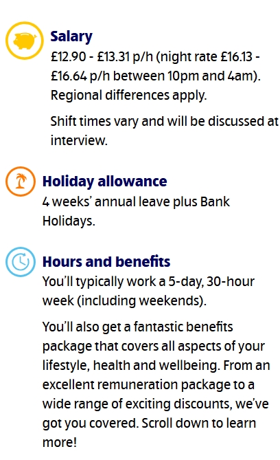 You’ll manage several hundred Aldi colleagues on site at busy periods and several hundred vehicles visiting each day. We’re opening new stores at lightning speed, so you’ll definitely be kept busy throughout your shift.